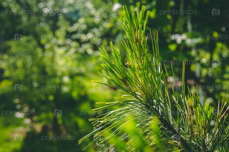 Иглы на ветке кедра при солнечном свете