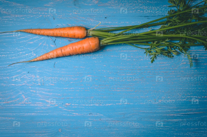 Свежая вкусная морковь на деревянном деревенском столе. Здоровая еда. Овощи