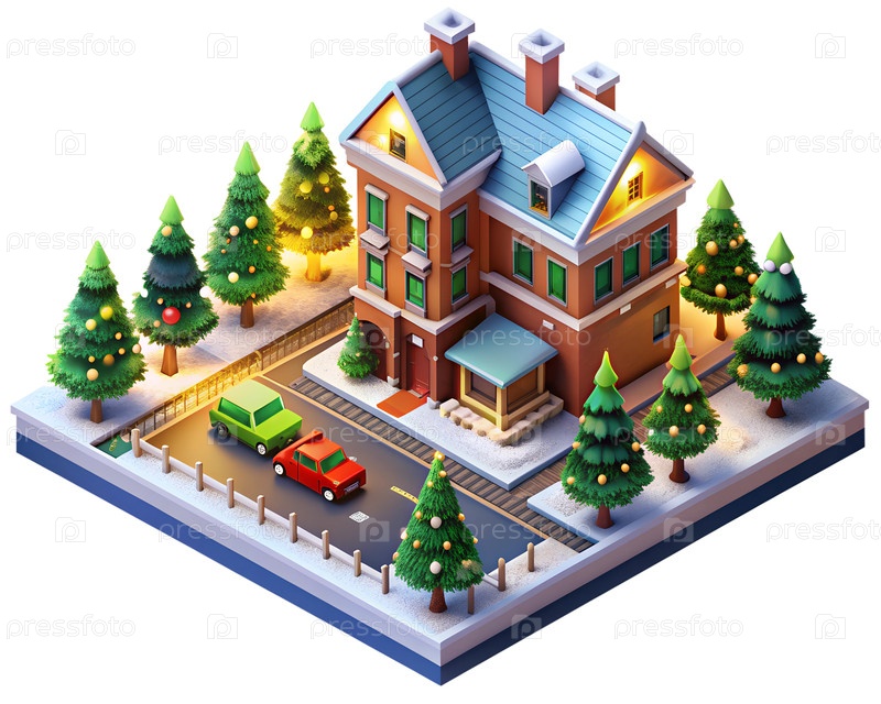 Новогодний рождественский изометрический промышленный завод и склад