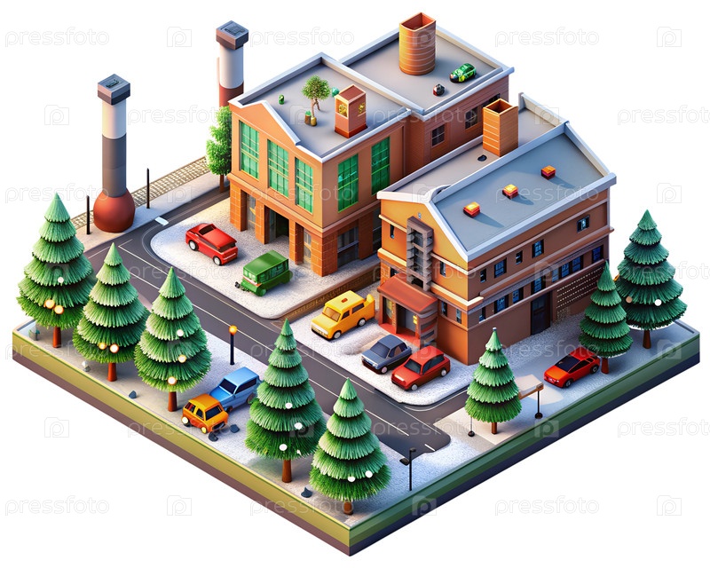 Новогодний рождественский изометрический промышленный завод и складское логистическое здание