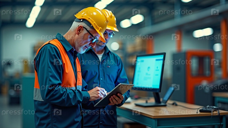 Портретная женщина-работница и инженер под контролем и проверкой производства