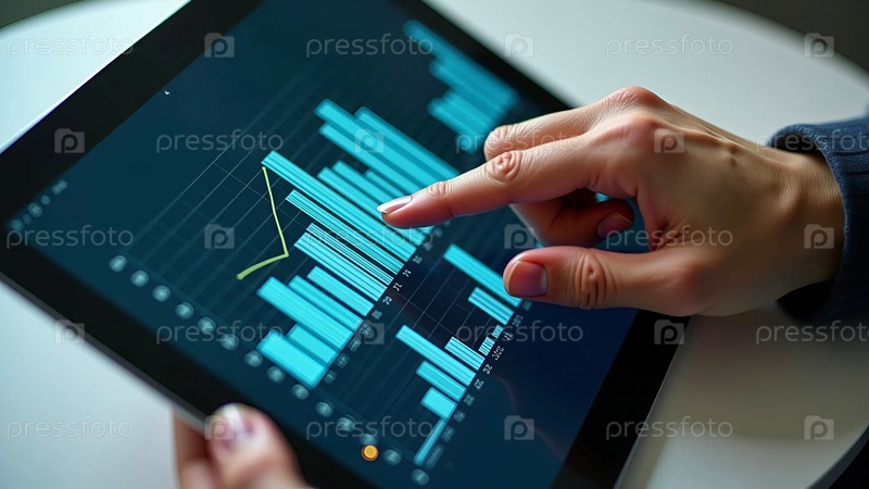 Бизнесмен проанализировал график финансового роста на цифровом планшете