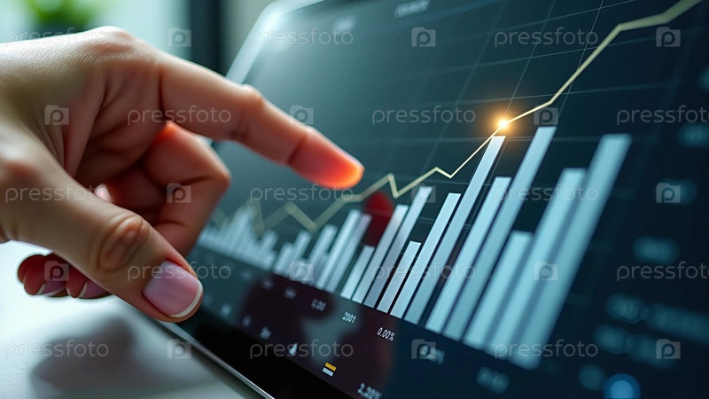 Бизнесвумен анализирует финансовый рост на цифровом планшете