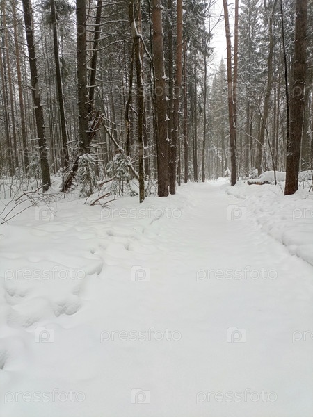 Серена Зимняя Путь изящно изгибается через Сосновый лес
