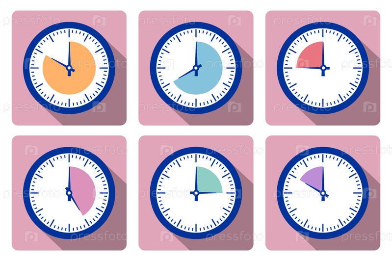 Установите часы с таймером в разных цветах в стиле инфографики иконок