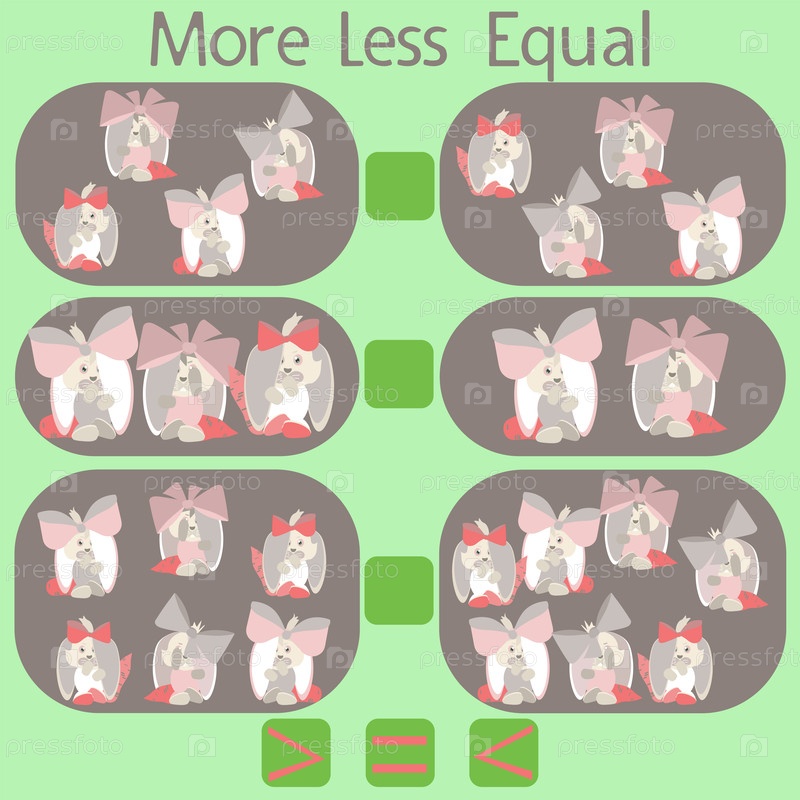 Подсчитайте смешных кроликов на картинке и поставьте знак больше, меньше или равно