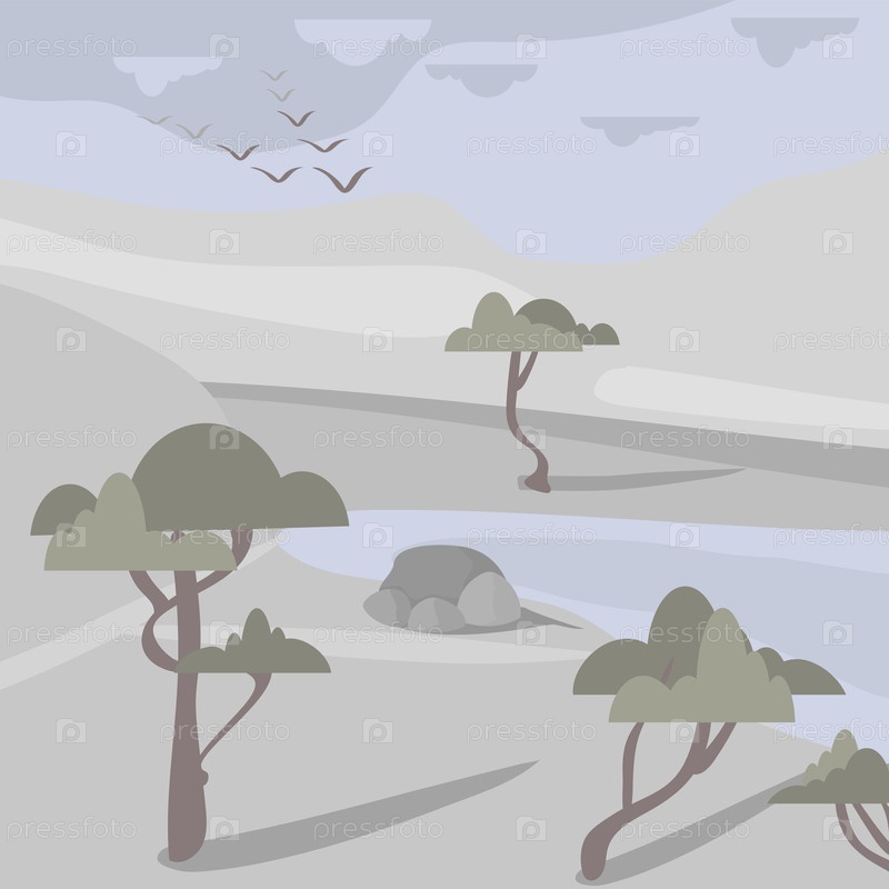 Живопись абстрактного ландшафта редкие деревья растут на скалах