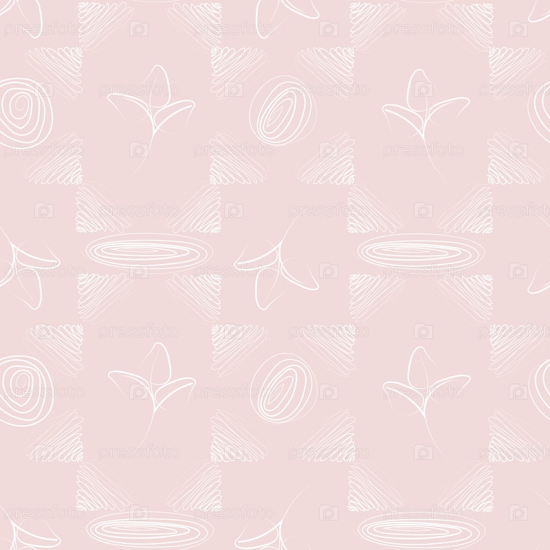 Бесшовный узор цветочных и геометрических элементов в скандинавском стиле на пастельном фоне