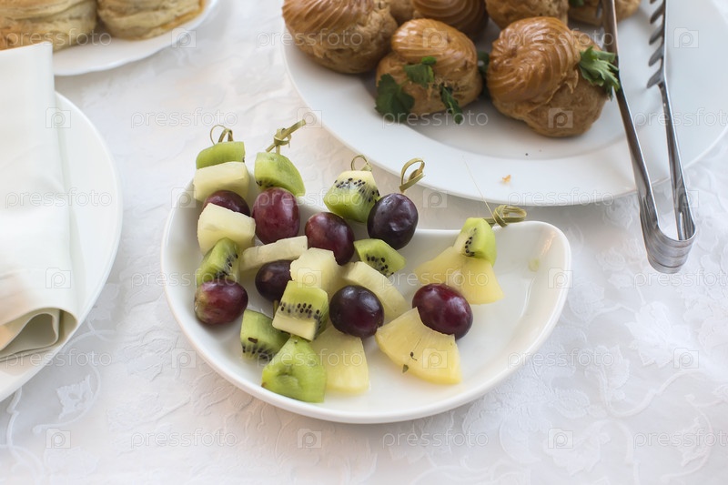 Тарелки для буфета. Канапес из винограда киви, яблоко