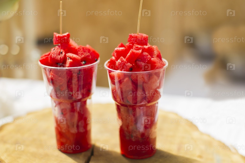 Пластиковые стаканчики с арбузными ломтиками