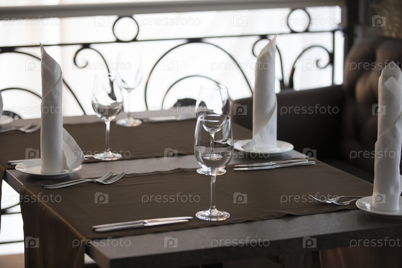 Стол в ресторане с пустыми стаканами и тарелками