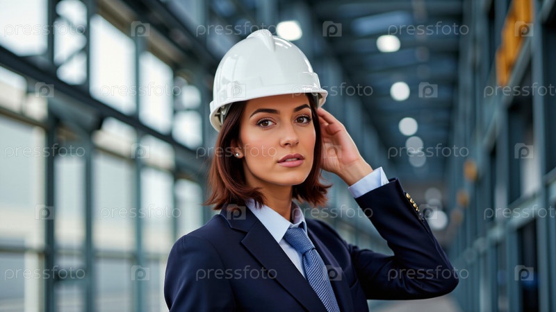 Женщина-работница проверяет систему машин для металлического листового завода, строительства