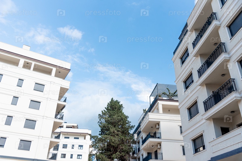 Многоэтажный жилой дом в пригороде города, дом на фоне солнечного летнего дня