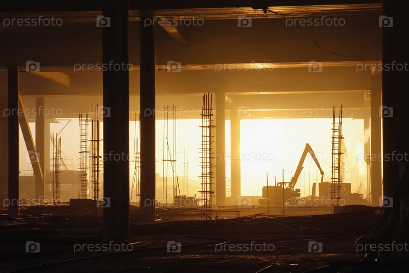 AI генеративная строительная площадка, строительство кранового здания на стройплощадке