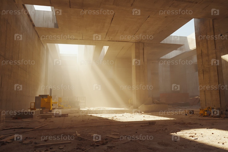 AI генеративная строительная площадка, строительство кранового здания на стройплощадке