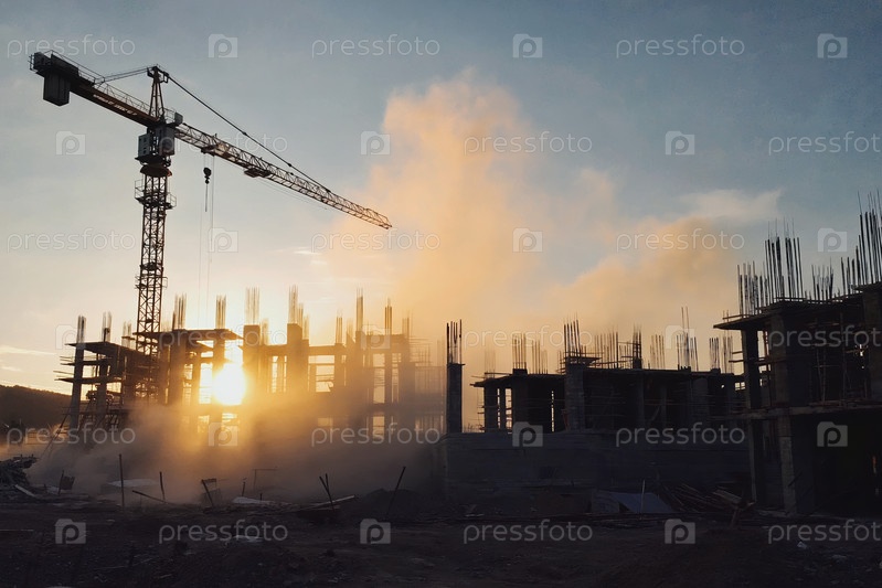 AI генеративная строительная площадка, строительство кранового здания на стройплощадке