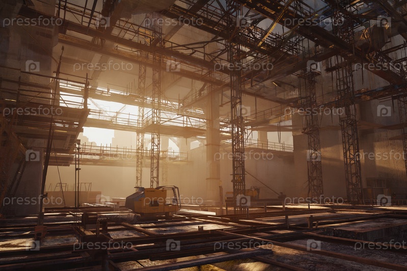 AI генеративная строительная площадка, строительство кранового здания на стройплощадке