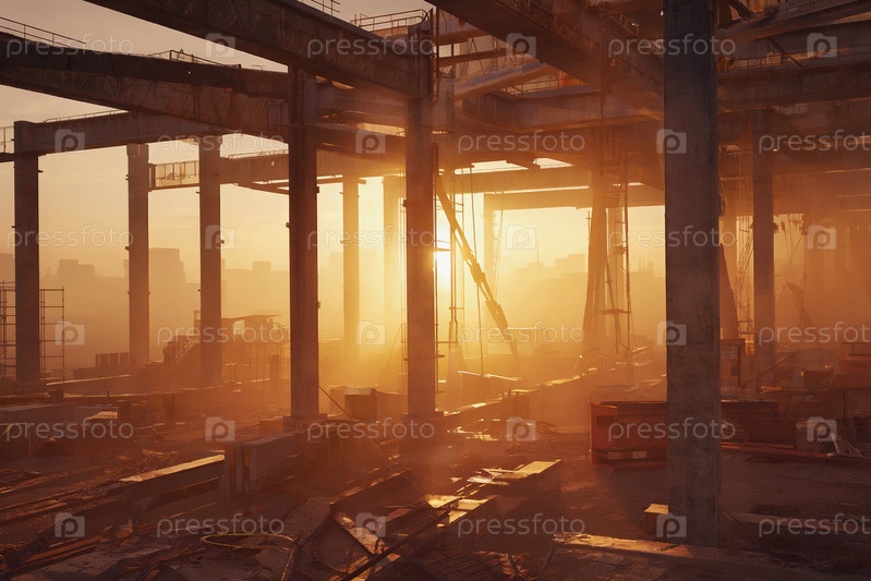 AI генеративная строительная площадка, строительство кранового здания на стройплощадке
