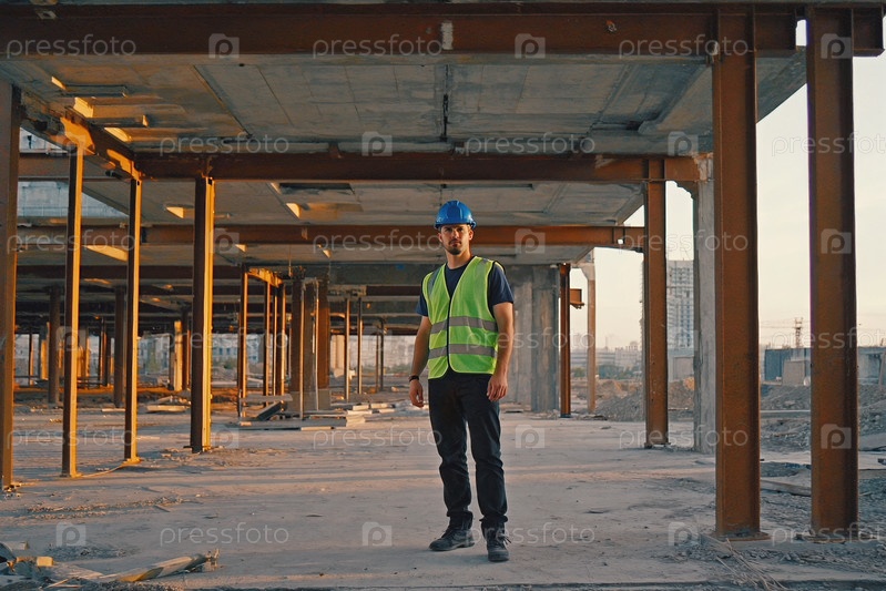 Инженер-генератор ИИ осматривает строительную площадку, здание строительства крана