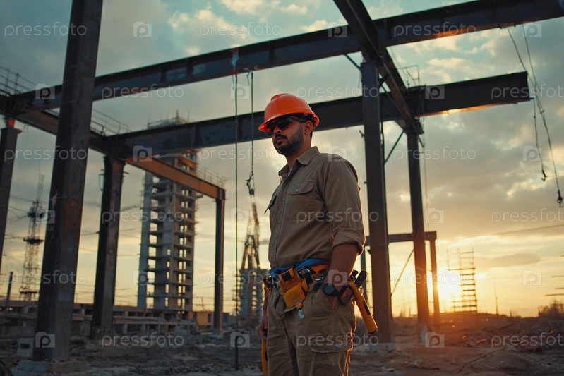 Инженер-генератор ИИ осматривает строительную площадку, здание строительства крана