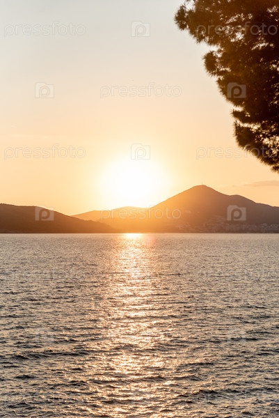 Морское солнце, Адриатика Природные пейзажи морской волны Свети Стефан, Черногория