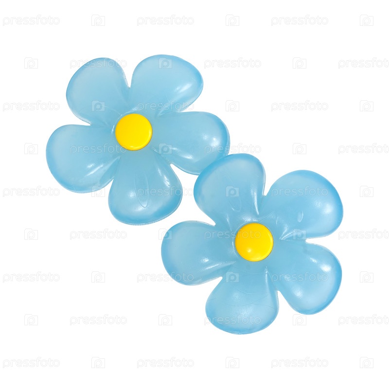 Два синих пластиковых цветка выделены на белом фоне под концептуальные композиции. Элемент дизайна с обрезкой пути