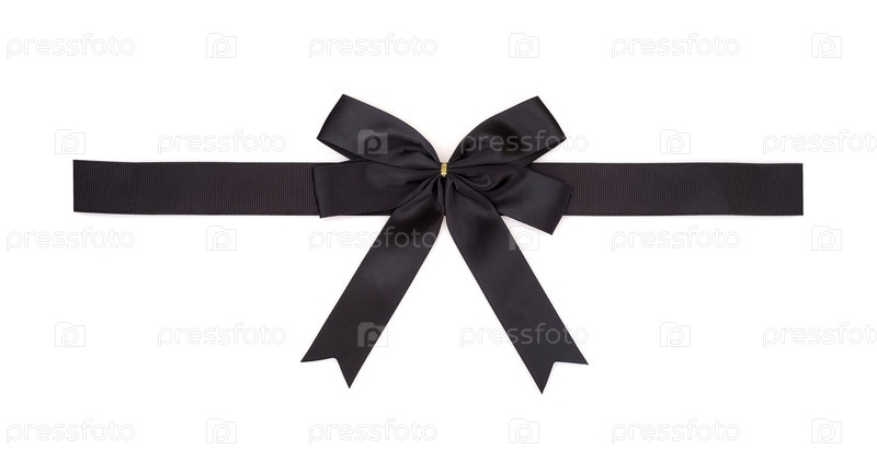 Декоративный черный шелковый лук и лента изолированы на белом фоне