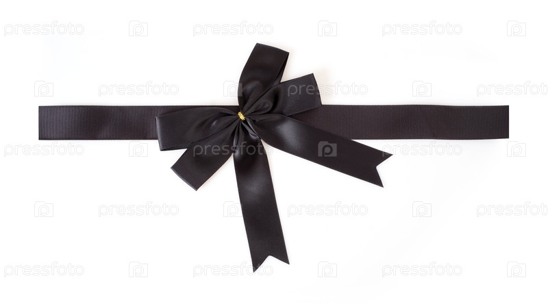 Декоративный черный шелковый лук и лента изолированы на белом фоне