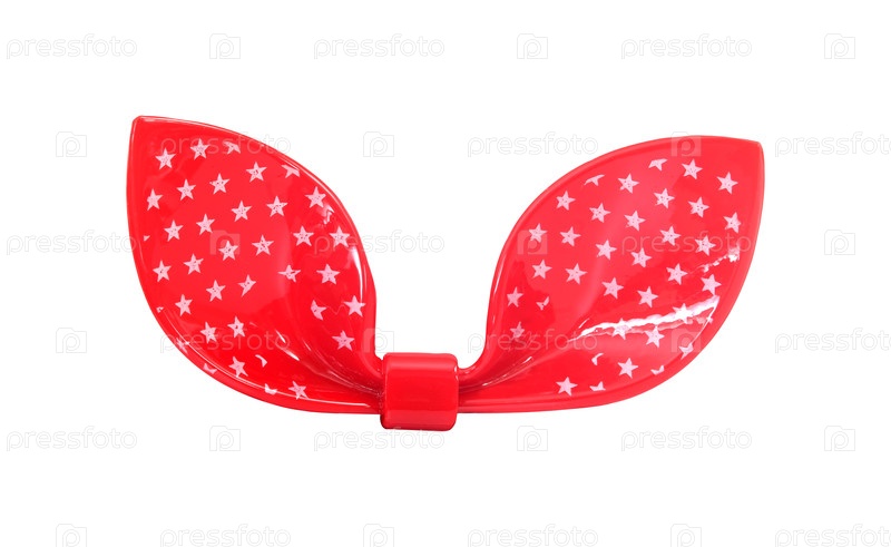 Красный пластиковый лук изолирован на белом фоне. Элемент дизайна с обрезкой пути