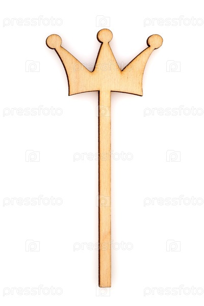 Декоративные деревянные элементы (корона), выделенные на белом фоне для создания праздничных плакатов, баннеров и открыток
