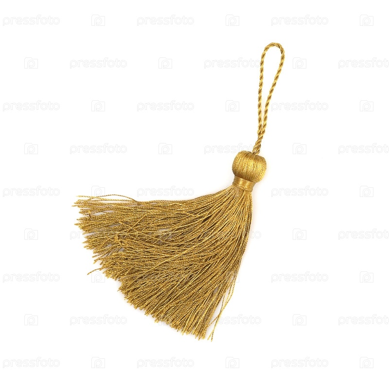 Золотая шелковая кисточка для создания графических материалов, изолировано на белом фоне