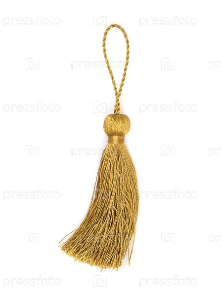 Золотая шелковая кисточка для создания графических материалов, изолировано на белом фоне