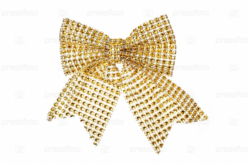 Блестящая игрушка на Рождество в виде золотой луки, изолированной на белом фоне