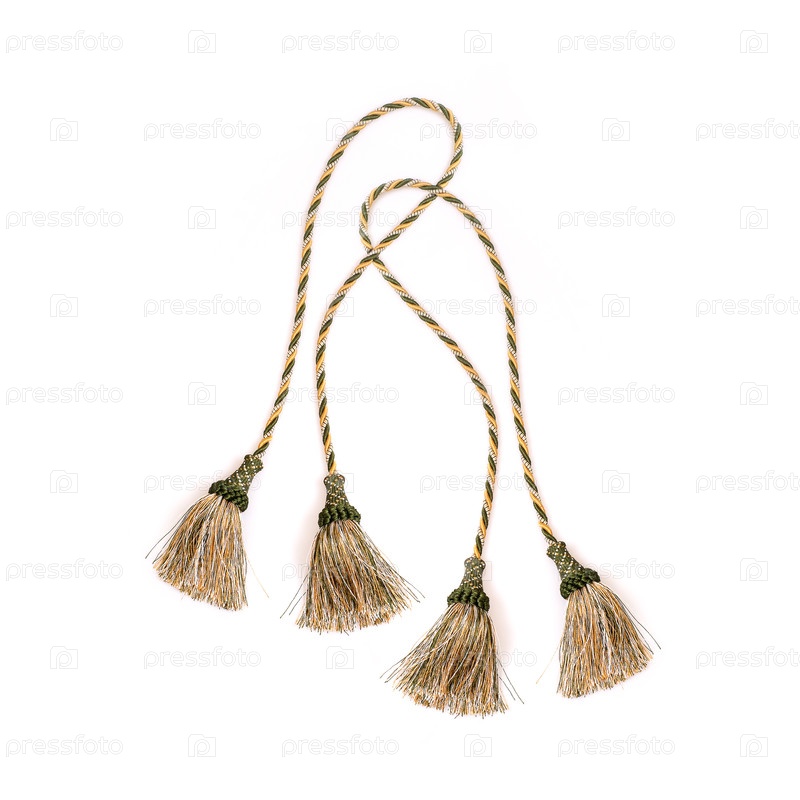 Золотые шелковые кисточки выделены на белом фоне для создания графических концепций