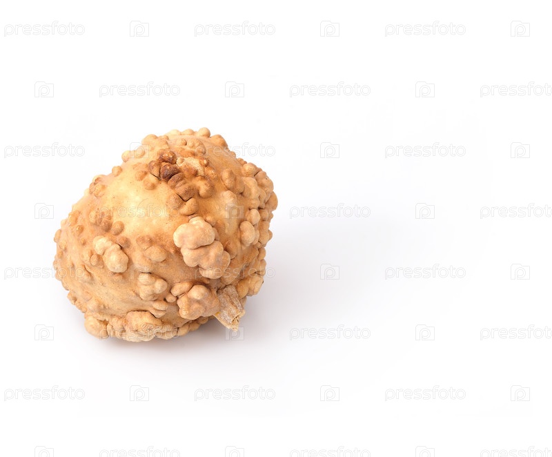 Натуральная желтая декоративная тыква выделена на белом фоне
