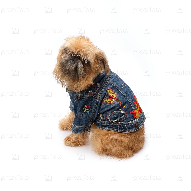 Брюссельский Грифон в джинсовой куртке изолирован на белом фоне