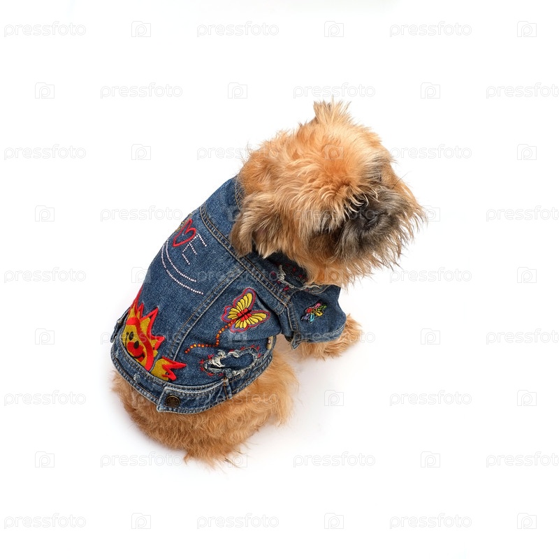 Брюссельский Грифон в джинсовой куртке изолирован на белом фоне
