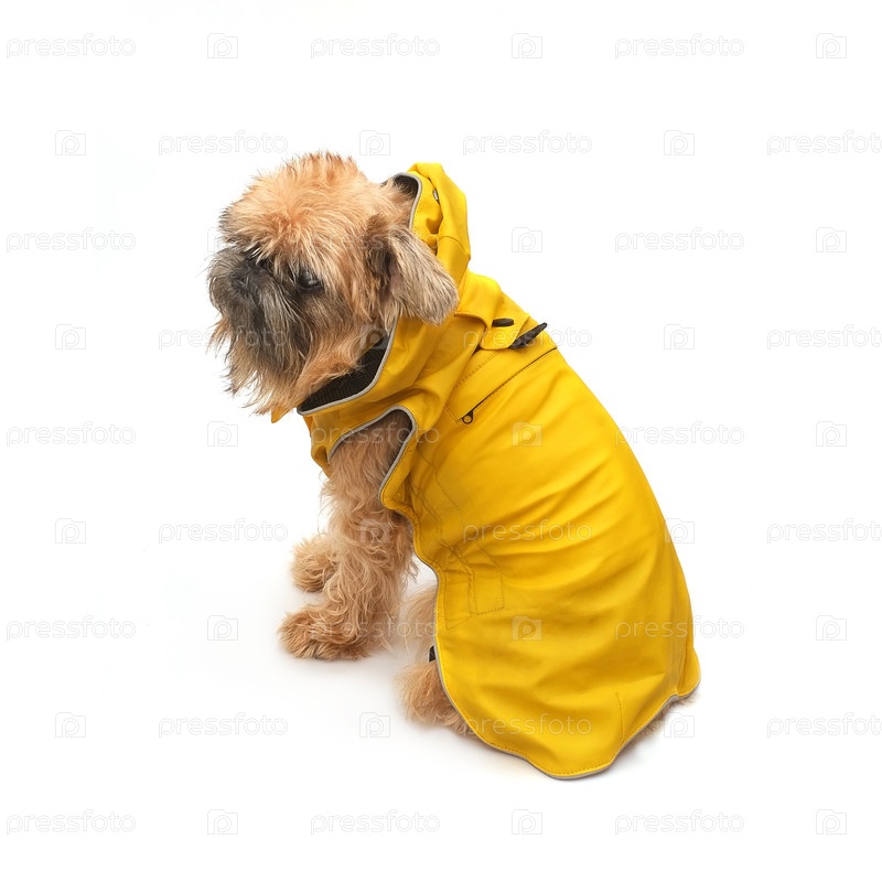 Брюссельский гриффон в желтом плаще изолирован на белом фоне