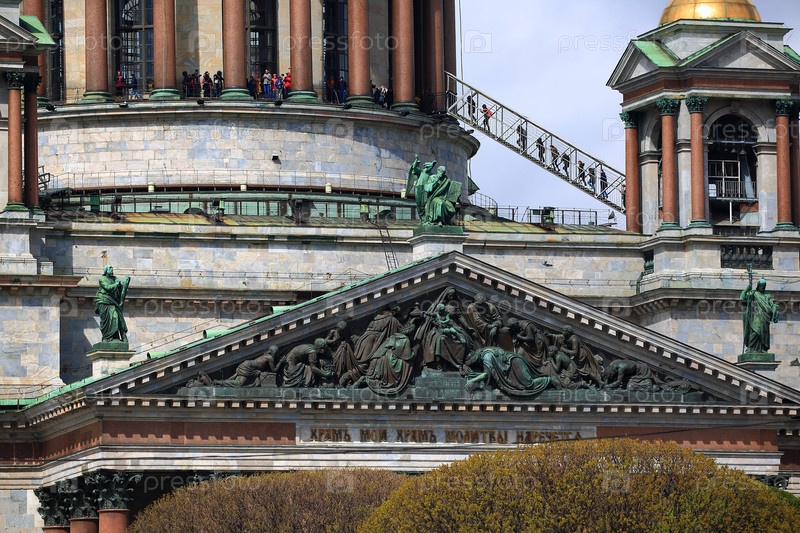 Фронтон южного портика и колоннады Исаакиевского собора