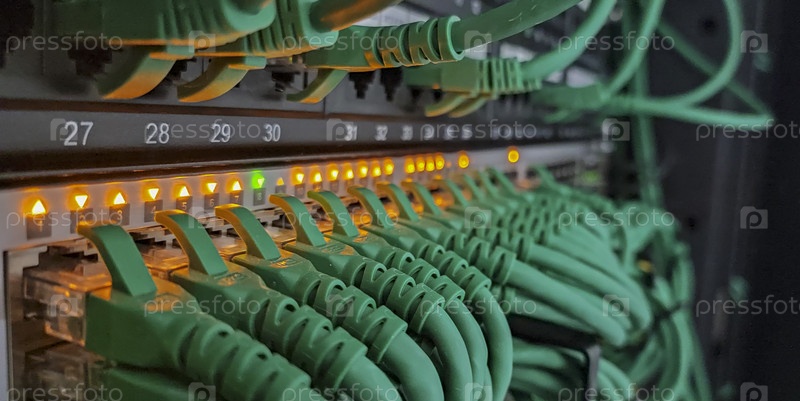 Сетевое оборудование. Патчкорды, подключенные к коммутатору