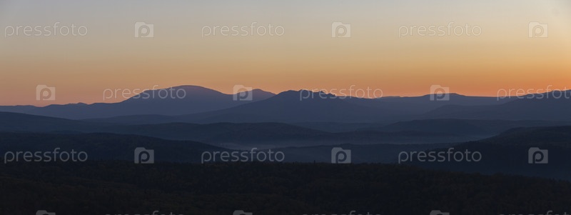 Осенний пейзаж. Панорама уральских гор на рассвете