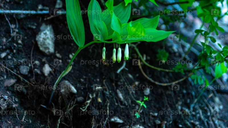 Купена с зелеными листьями и белыми цветами