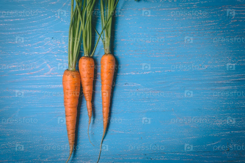 Свежая вкусная морковь на деревянном деревенском столе. Здоровая еда. Овощи
