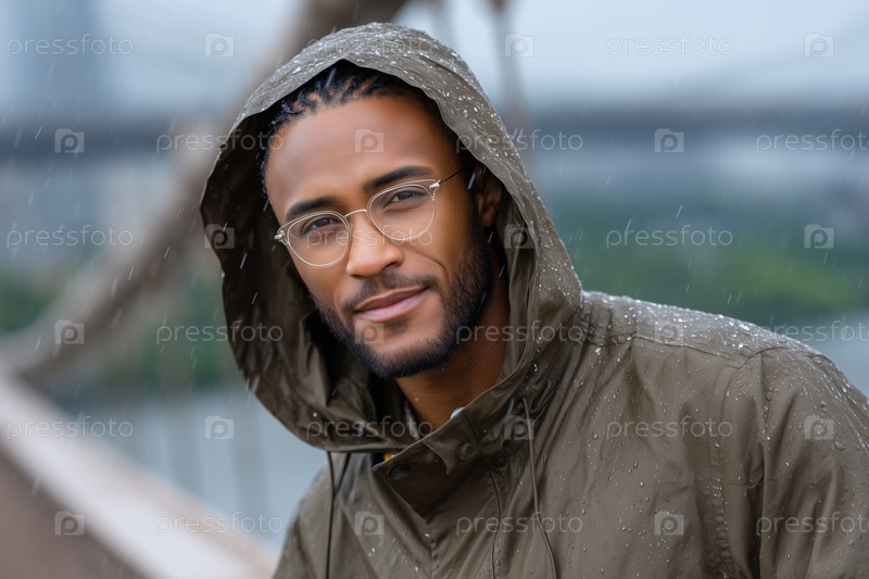 Красивый африканский американец в плаще и очках