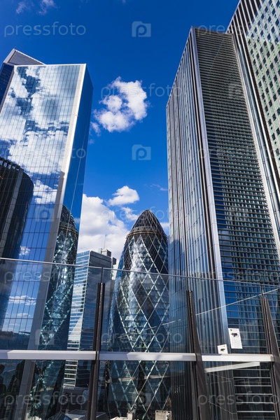 Потрясающий вид на финансовый район Лондона с современными небоскребами и культовым Геркиным