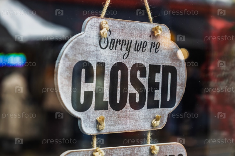Rustic - Sorry We Re Closed - Знак на стеклянной двери в окне магазина с размытым фоном
