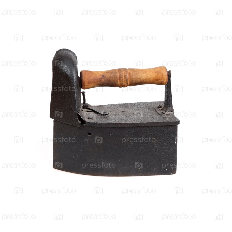 Античный угольный железо изолирован на белом фоне