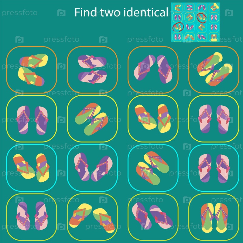 Найдите 2 одинаковых изображения в головоломке Funny Flip-Flops для детей