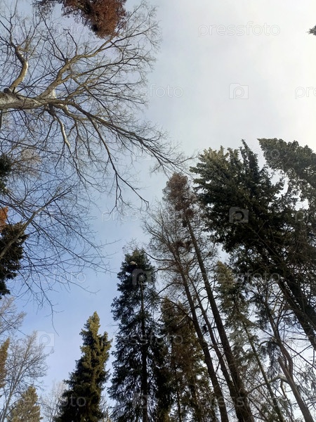 Величественные Зимние Деревья Достигают Скайворда Против Эфирного Голубого Горизонта