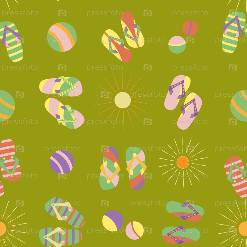 Бесшовный рисунок без фона, состоящий из красочных шлепанцев, шариков